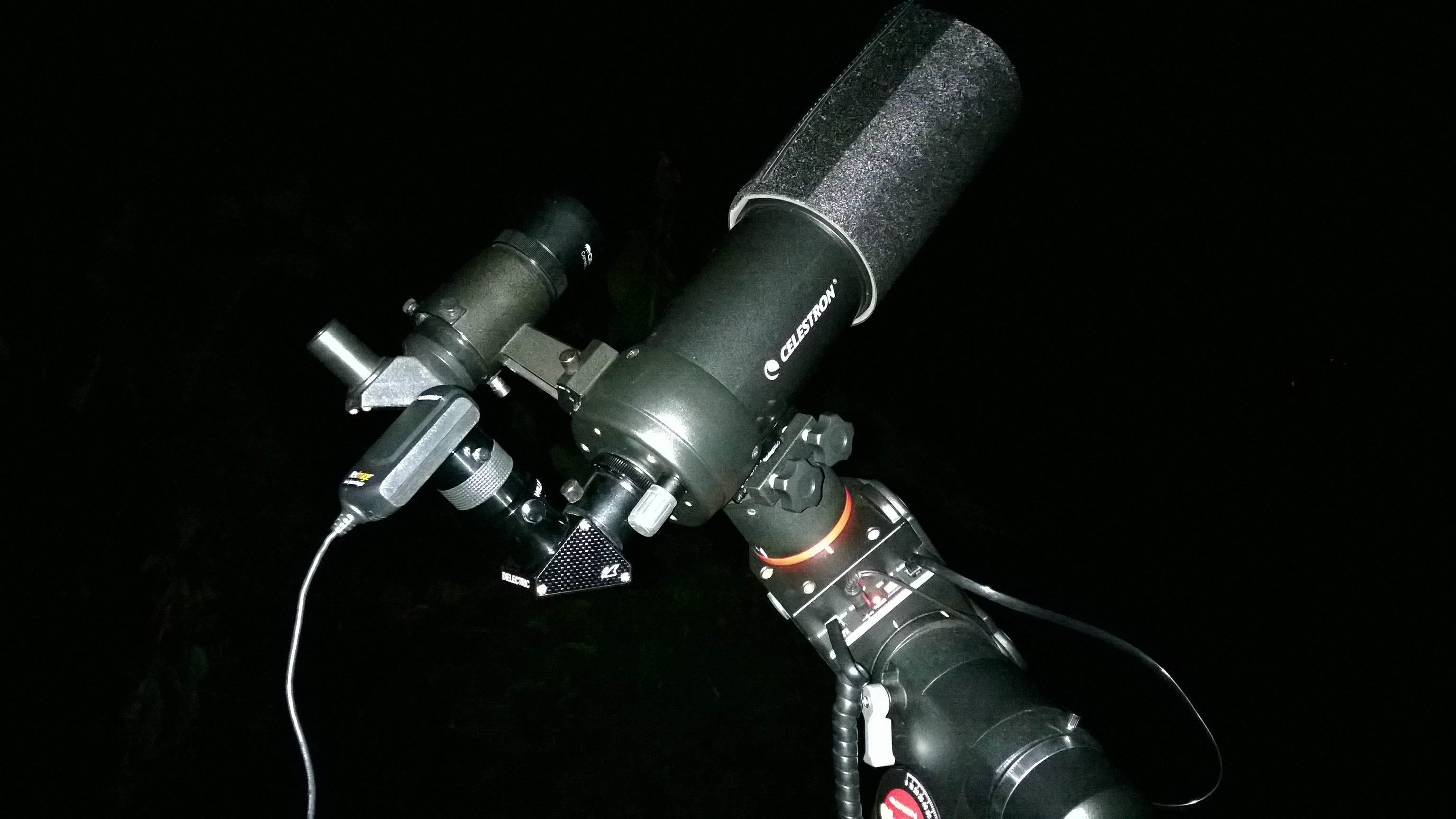 Hoy pruebo por primera vez la combinación de la NexImage, con mi telescopio C90, de tipo Maksutov-Cassegrain. Para esta ocasión, tomé una serie de 11 vídeos de diferentes sectores de la luna, con los cuales creé un mosaico de la luna creciente. Cada vídeo se compuso de 1000 cuadros, de los cuales escogí los mejores 500 en Registax V6 para ser procesados. La unión de todos los cuadros la completé usando Microsoft ICE.