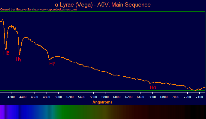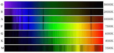 - Las estrellas se categorizan en diferentes clases, dependiendo de cuán visibles son las líneas de hidrógeno en su espectro: O, B, A, F, G, K, M.