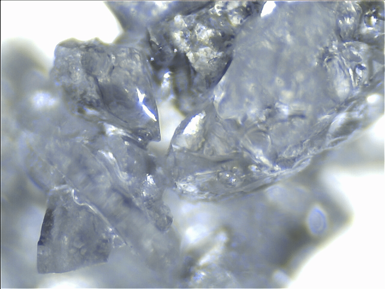Les comparto dos imágenes de granos de azúcar, las cuales obtuve capturando unos vídeos con microscopio y procesándolos en Registax V6.
