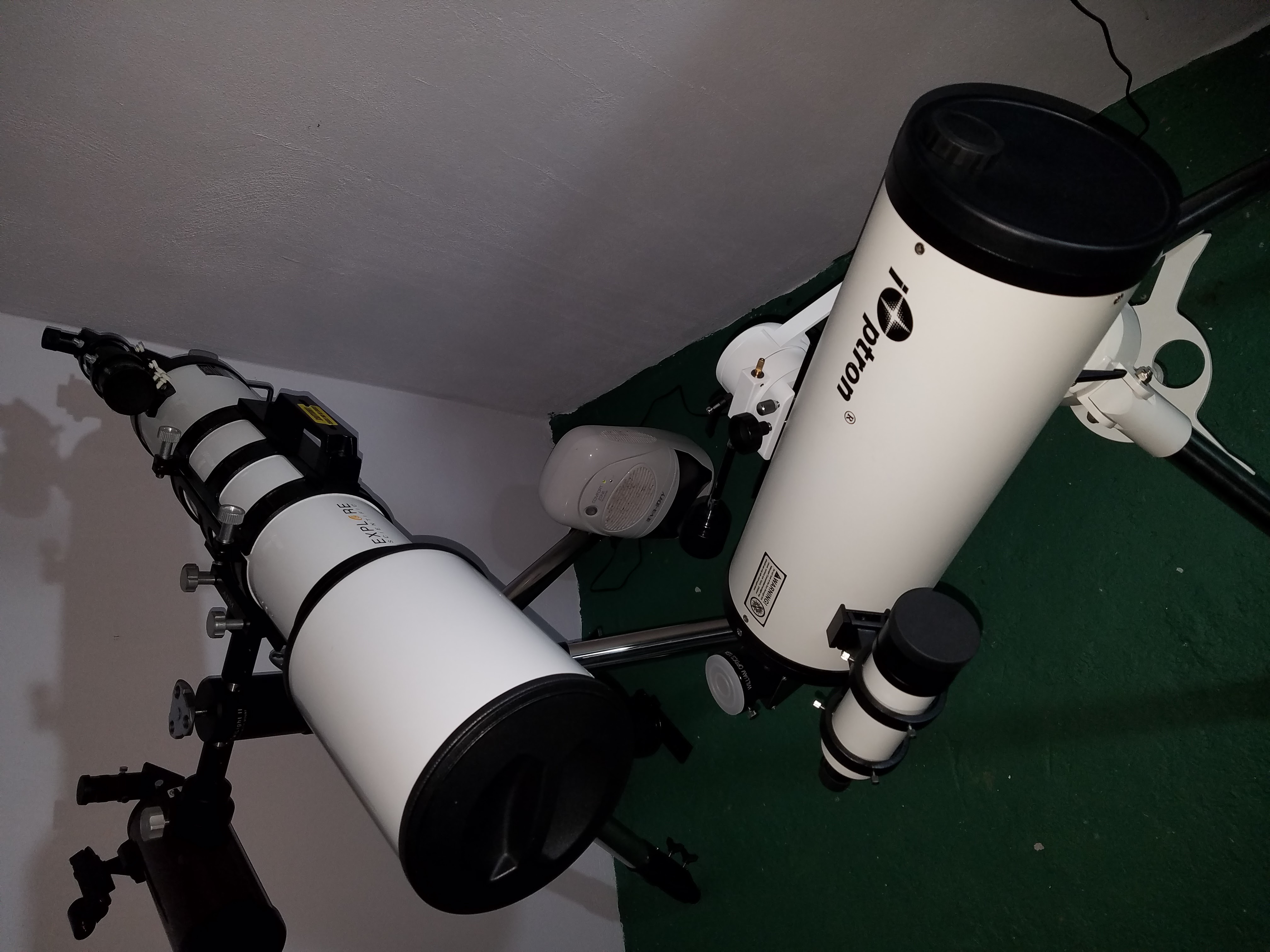 En estos días adquirí un iOptron 150 Rumak Mak-Cass a buen precio por los clasificados de Cloudy Nights. Ya que tengo el C8 montado permanentemente en mi observatorio, no tenía un telescopio de buen tamaño para observación planetaria. El refractor AR152 es bueno, pero no para observación planetaria en detalle debido a su aberración cromática. Por otro lado, sus más de 20 libras lo hacen un poco menos portátil. Por lo tanto, tenía buenas expectativas del Mak de 150mm para poder observar la luna y Júpiter en estos días. Su diseño Rumak permite que el espejo secundario tenga una figura diferente a la del menisco y provee un campo visual mucho más plano que el de un Mak común de tipo Gregoriano (el cual tiene su secundario «pintado» en la cara interior del menisco).
