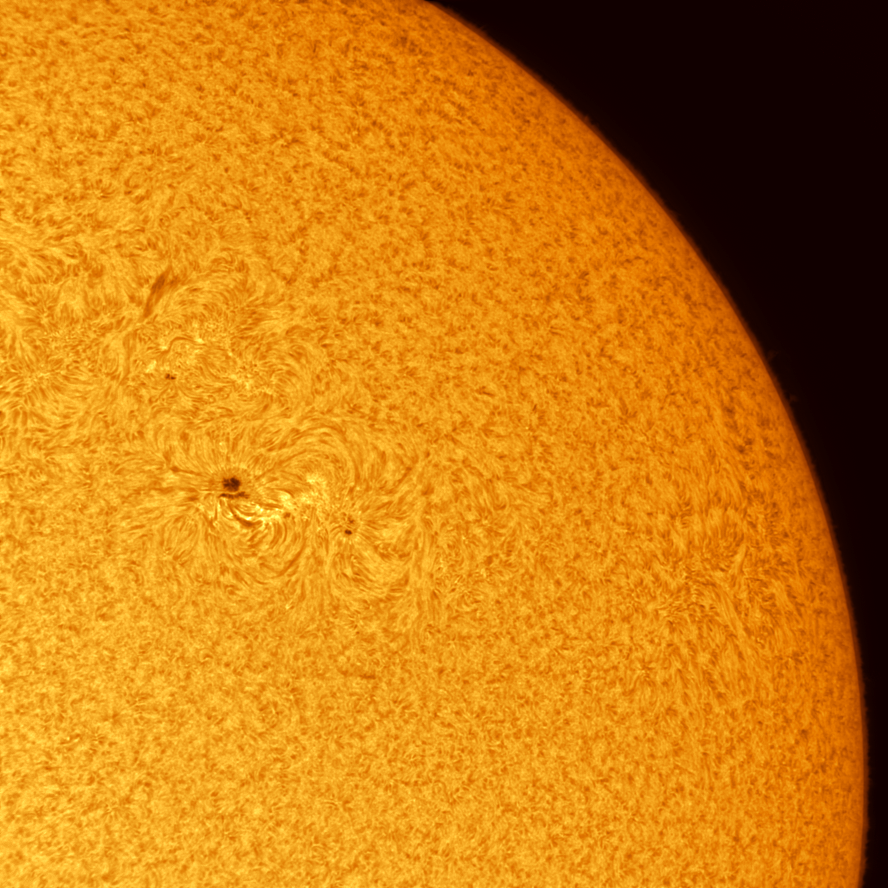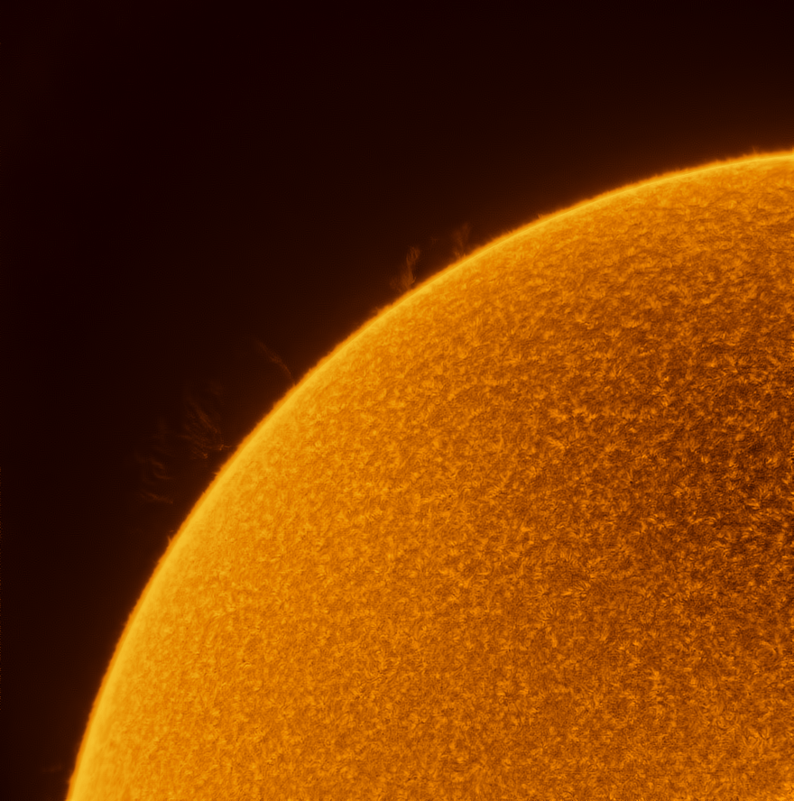 Hola! Te comparto unas imágenes que tomé en este día, utilizando equipo solar apropiado para telescopios, conocido como un filtro de hidrógeno alfa. En estas fotos, podrás ver las manchas solares AR 2835 y AR 2836, y un detalle de varias prominencias visibles en el borde de nuestra estrella. Espero te gusten!