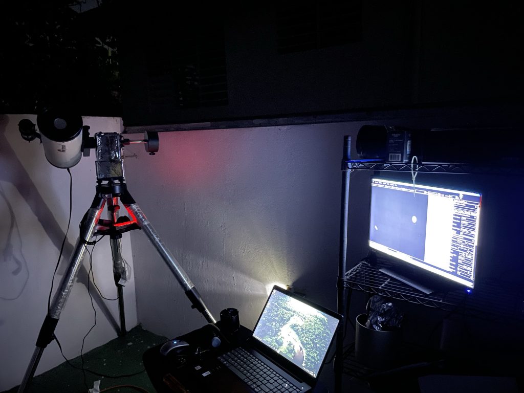 Anoche no fue muy exitosa la sesión de fotos, pero esta noche pude lograr un resultado mucho más satisfactorio. Ya después de hoy, los planetas comenzarán a alejarse nuevamente y la conjunción terminará. En esta foto, los planetas estaban aproximadamente a unos 6 minutos de arco, o 0.1 grados de separación desde nuestro punto de vista.