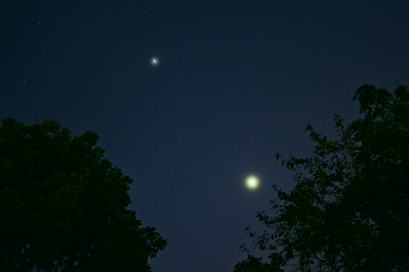 Les comparto una imagen de los planetas Júpiter y Venus, los cuales se empiezan a despedir hacia el oeste según pasan los meses. Sin embargo, a finales de este mes de junio se espera su gran encuentro, durante el cual estarán extremadamente cerca el uno del otro, según nuestro punto de vista.