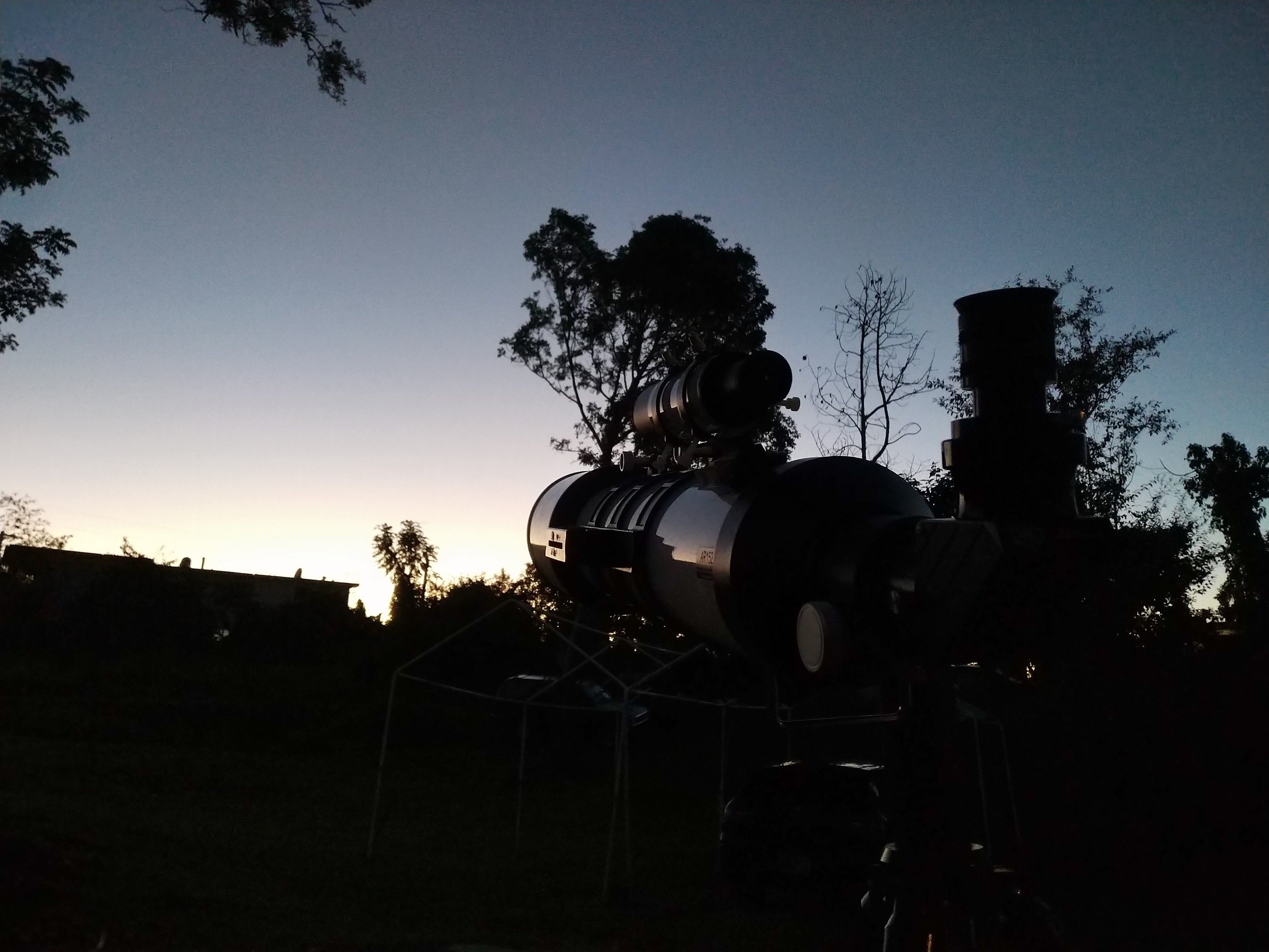 Por otro lado, el clima en estas últimas semanas ha sido excelente para observar el cielo. Noches completamente despejadas se han apreciado en estos días, algo que ya era bastante raro el año pasado. Hace unos días me di cuenta de que ya Venus se veía levemente en el cielo vespertino, por lo que al día siguiente esperé al anochecer armado de mi refractor AR152. Pude averiguar también que Mercurio estaba en mejor posición aún dado a que estaba a un altura mayor que Venus.