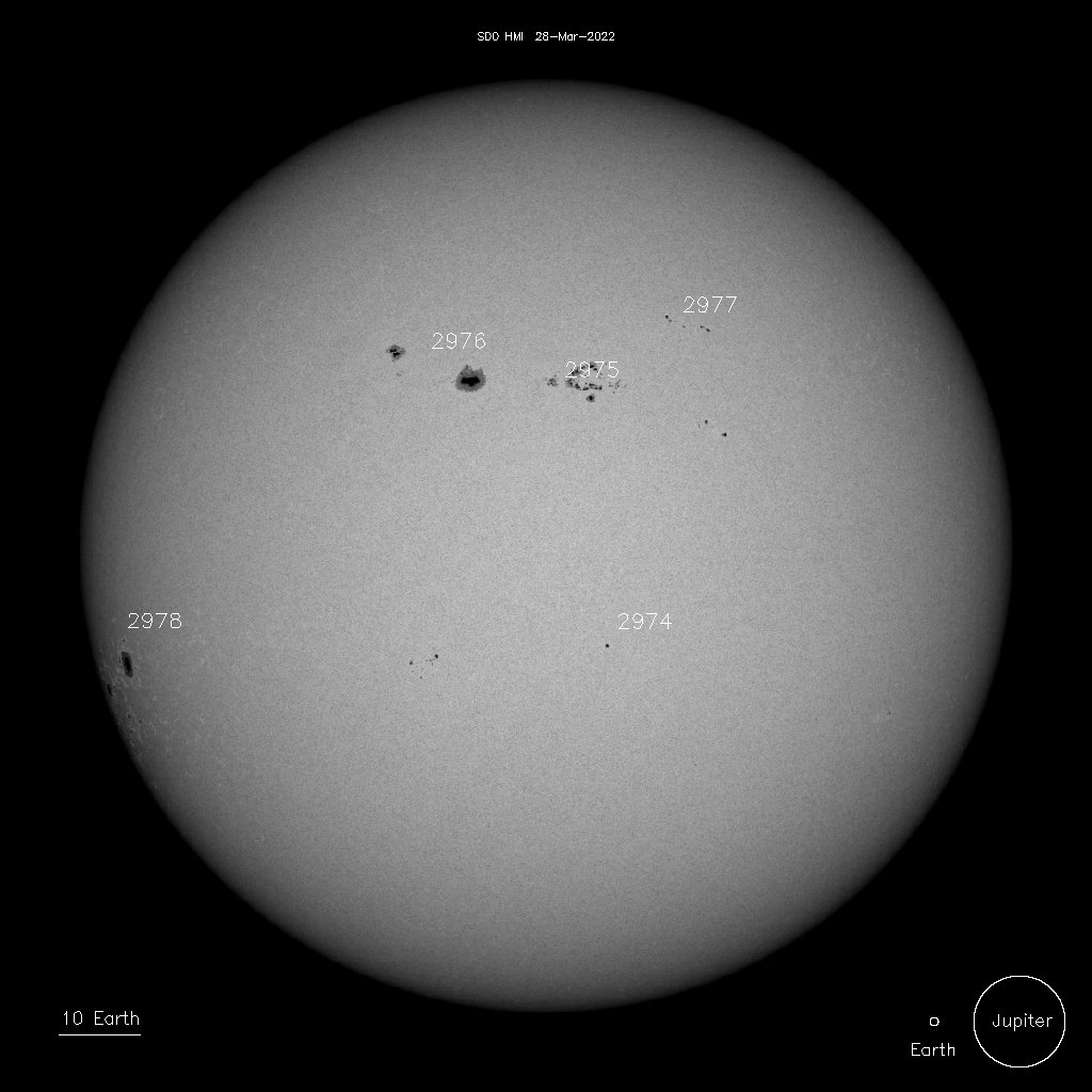 Según la página de NASA para las manchas solares, así se ve el sol hoy en luz blanca: