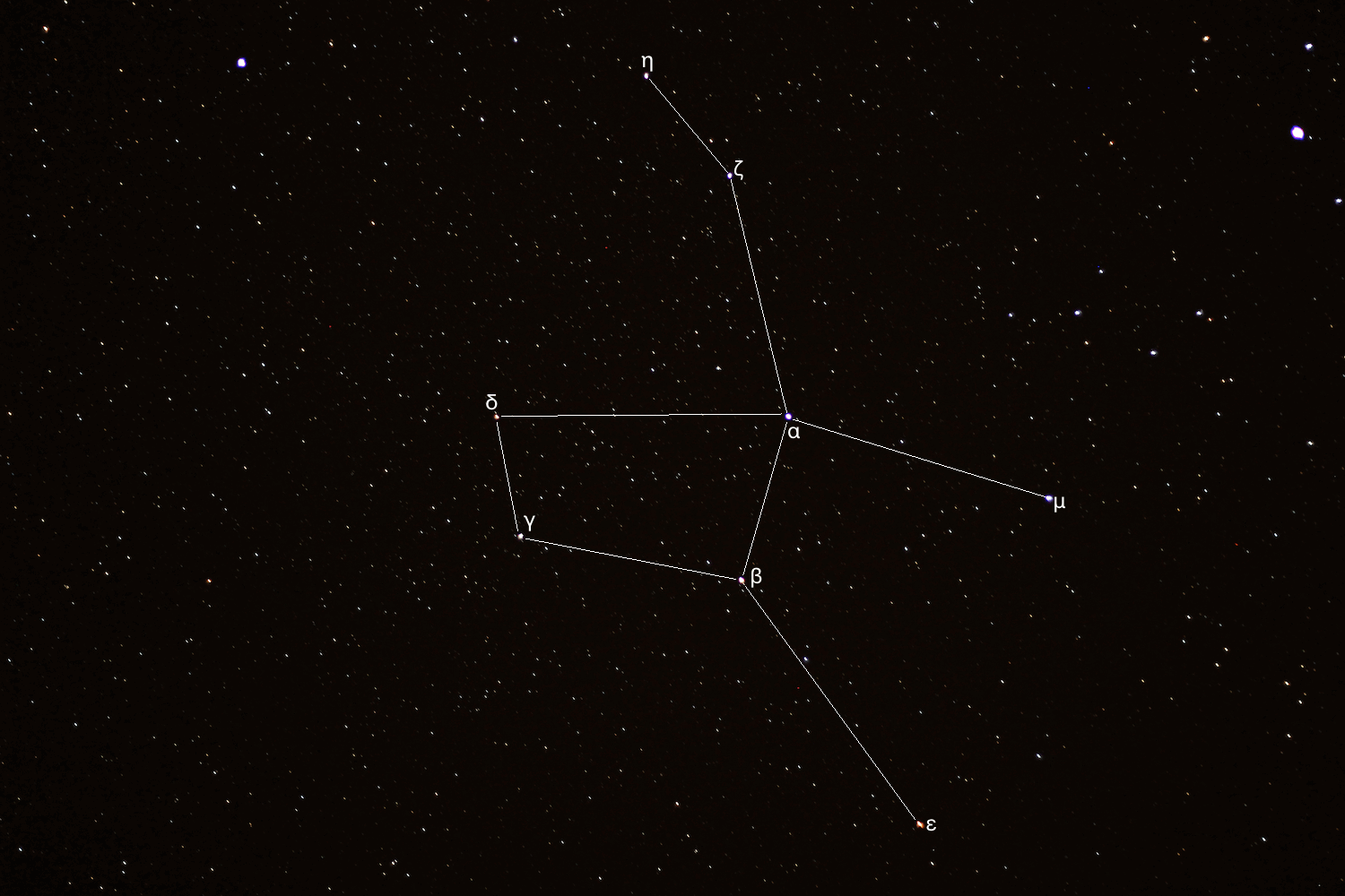 Después de conversar con los miembros del grupo por un rato, me moví hacia la Osa Mayor, donde observé las estrellas dobles Mizar y Alcor, las cuales en realidad se convierten en un sistema de cuatro estrellas en Mizar y de dos en Alcor.