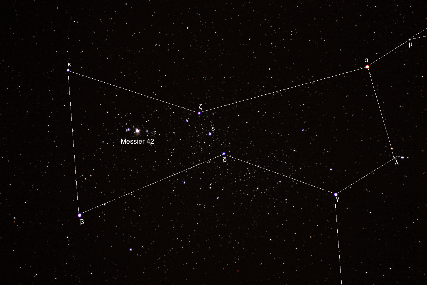 Después me orienté hacia las Pléyades, las cuales apenas cabían en el campo visual del Plossl de 32mm. Luego, me movía hacia la Nebulosa de Orión o Messier 42, la cual se veía majestuosa a través del ocular, con una gran cantidad de detalles en ésta. El Trapecio se distinguió con facilidad, además de la estrella Nair al Saif, con su nebulosa NGC 1980. Más hacia el norte, observé la nebulosa Messier 78, fácilmente observable pero díficil de capturar propiamente en fotografías.