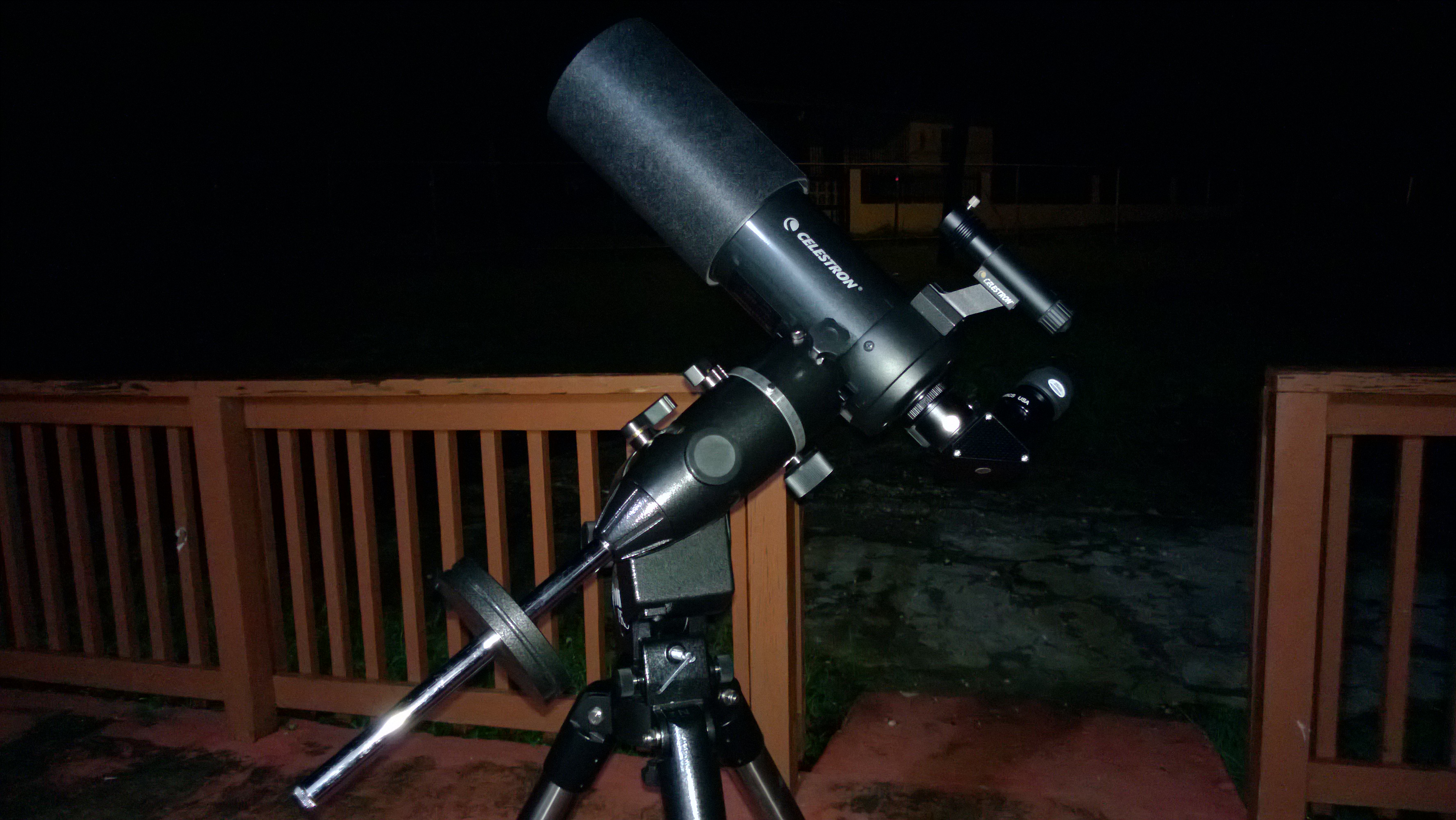 Hoy tuve la oportunidad de utilizar el telescopio nuevamente, aunque no me lo imaginé posible dado los pronósticos del tiempo, los cuales anunciaban grandes cantidades de lluvia para la zona noroeste de Puerto Rico. Como a las 10PM, en el cielo se veían nubes dispersas pero la mayor parte se encontraba despejada, por lo que decidí montar mi pequeño telescopio C90 para observar a Saturno.