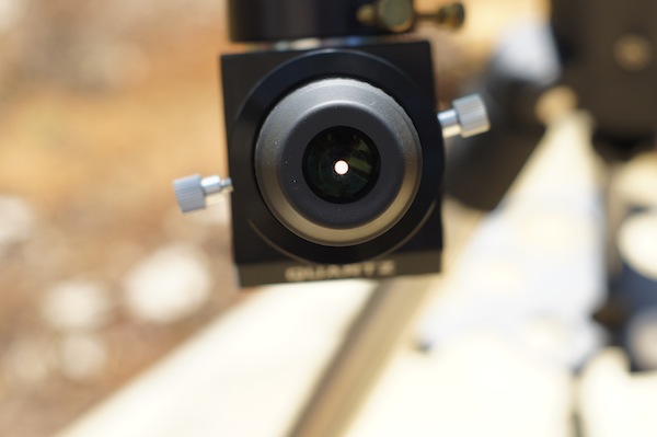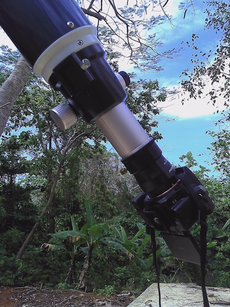 Aunque a mitad de sesión el cielo se empezó a nublar, se instaló una cámara DSLR para tomar una imagen del sol. Debido a la distancia necesaria para enfocar la cámara, se instaló un adaptador de 35mm de extensión entre la cámara y el enfocador del telescopio.