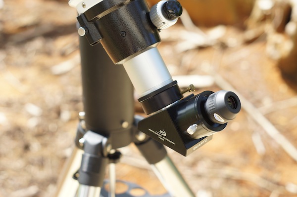 Cuando observamos el sol, a veces es un poco difícil orientar el telescopio hacia éste, ya que se nos hace un poco difícil mirar el sol a simple vista. Por lo tanto, lo que hacemos es mirar hacia el otro lado, o sea, hacia la sombra que el telescopio hace en el suelo. Como el telescopio es un cilindro, cuando su sombra se haga lo más pequeña posible (idealmente un círculo) el telescopio estará orientado bastante cerca del sol. Con los mismos oculares usados para observar el cielo nocturno, podremos ver entonces los detalles de la superficie del sol sin dañarnos la vista. Por otro lado, nótese que en todas las imágenes de este artículo no verá por ningún lado un telescopio buscador o «viewfinder», ya que no es necesario para la observación solar, y además que puede que sin querer tratemos de mirar a través de éste para orientar al telescopio hacia el sol, causándole daño a nuestra vista.