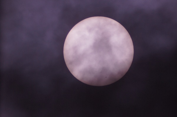 En la imagen se pueden ver las nubes pasando a través del campo visual, pero muestra lo que se ve a través del telescopio con un filtro de luz blanca.
