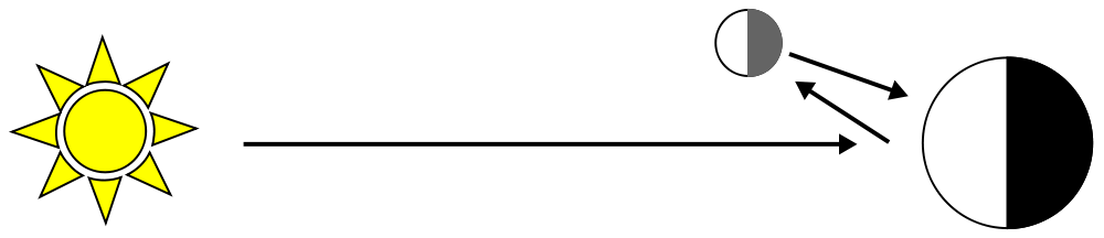 Cuando la luna no se encuentra en su fase llena, hay una zona de su superficie que está oscuras, o sea que no está iluminada por el sol. No obstante, en ciertas noches, se pueden apreciar muy tenuemente algunos de los rasgos de esta superficie en penumbra. ¿De dónde proviene la luz que ilumina esta zona? De igual forma en que la luna refleja la luz del sol, lo cual nos permite verla, la Tierra refleja una cantidad de luz solar suficiente como para iluminar la parte de la luna que está a oscuras.
